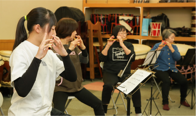 笛の音、太鼓の音で、笑顔に。