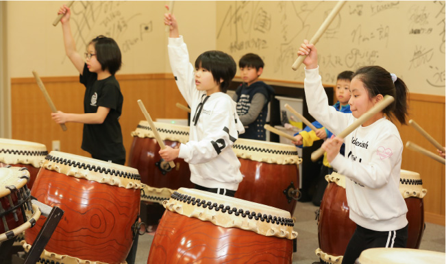 あいさつや礼儀を重点に、和太鼓を通じてリズム感や協調性を養います。